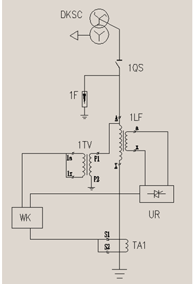 1、DKSC-接地变压器  2、1QS-隔离开关  3、1F-避雷器  4、1TV电压互感器5、1LF-消弧线圈  6、WK-智能控制器  7、UR-整流